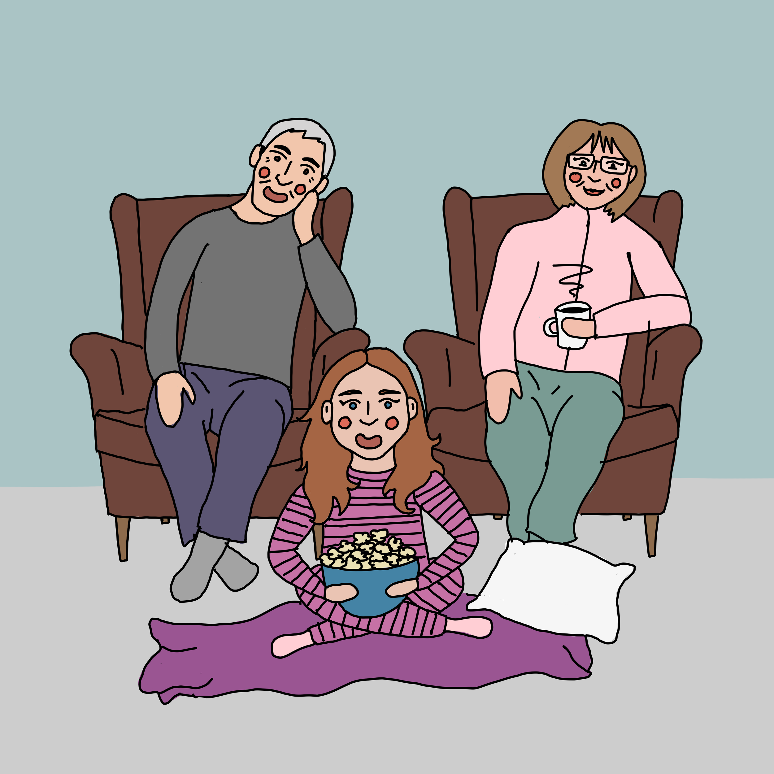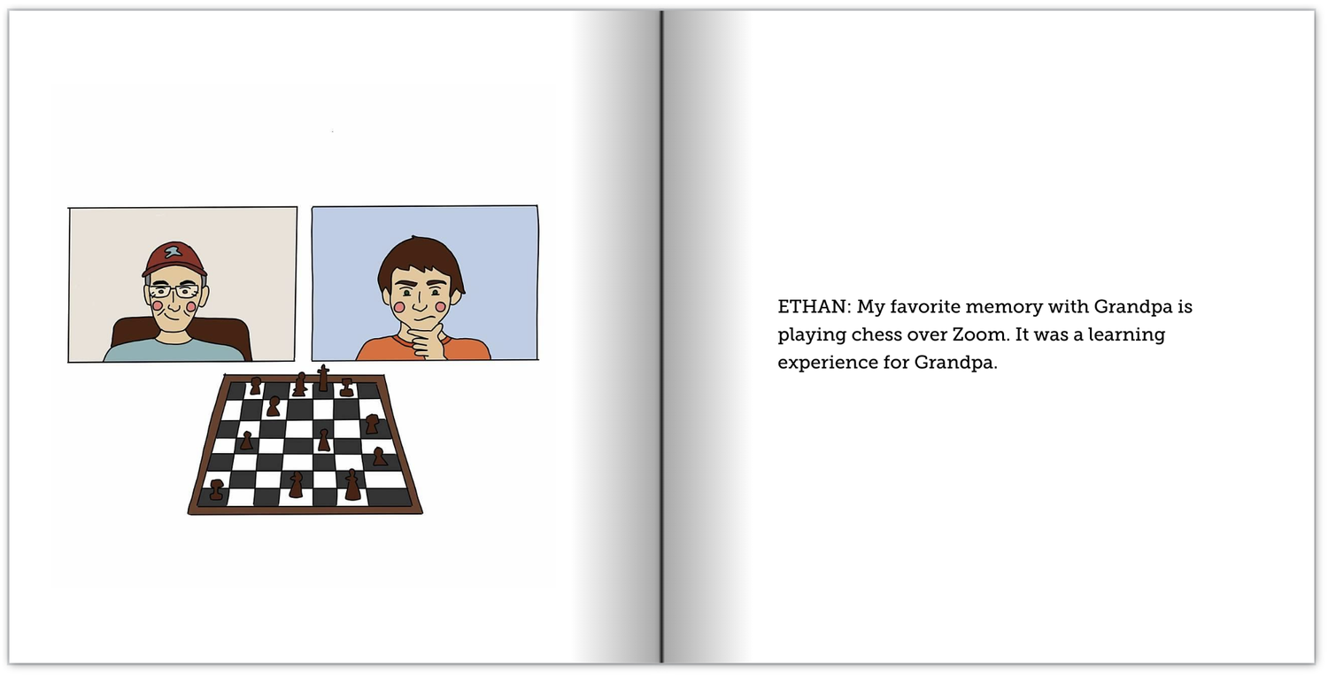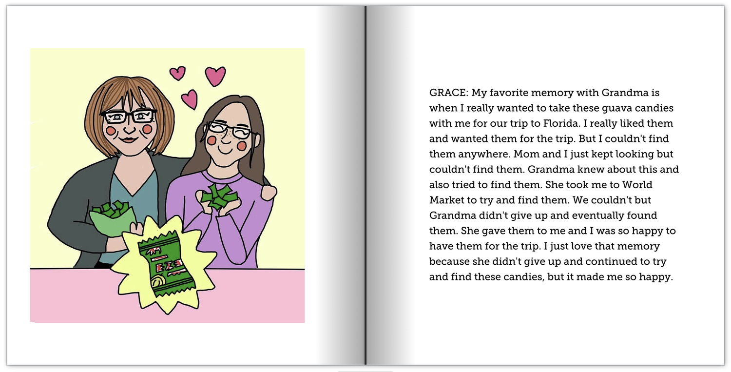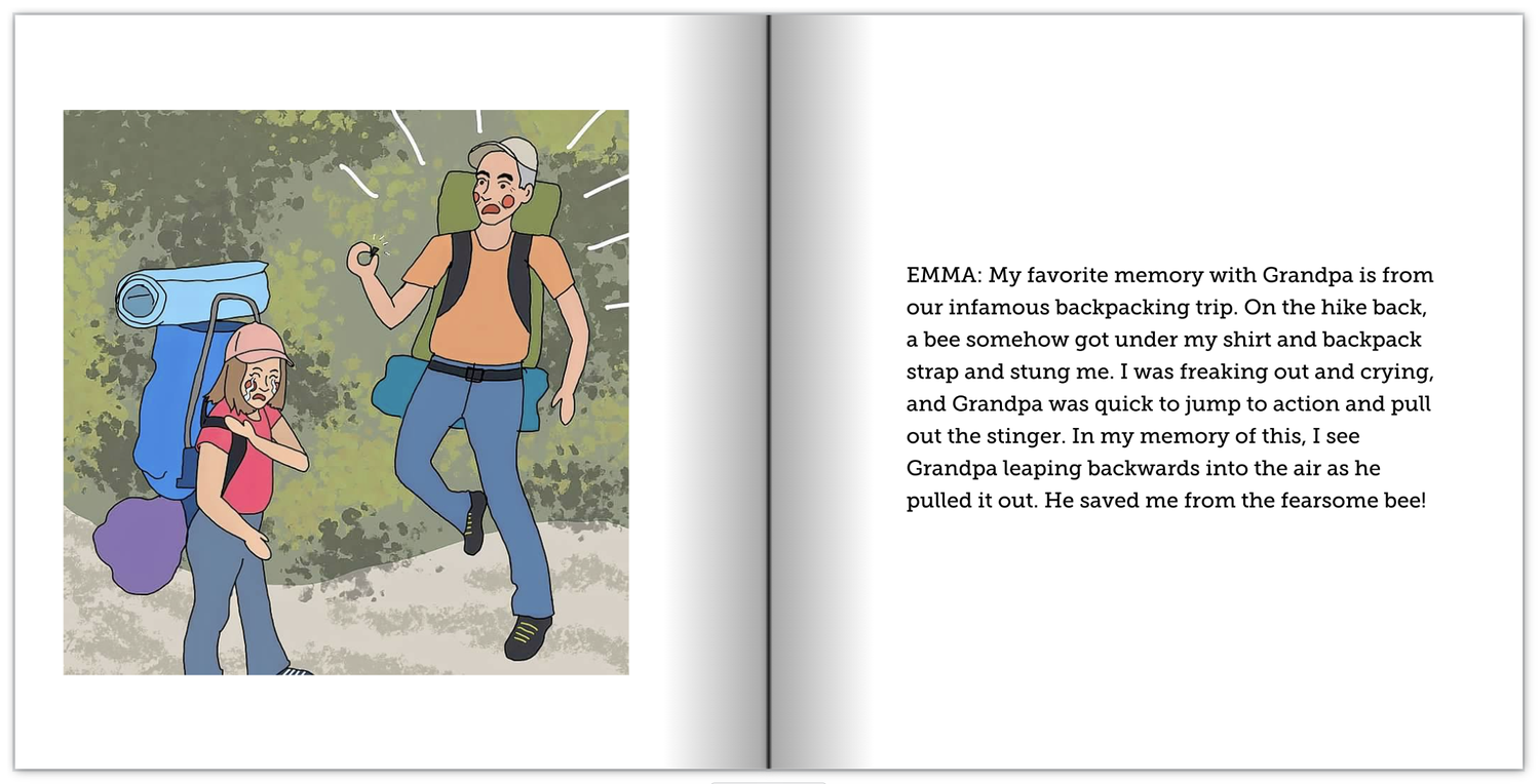 I grew up in a very large family, and one year for Christmas, I thought it would be fun to create an illustrated book for my grandparents that includes memories from all of the grandkids. I collected answers from each of my cousins and made an illustration for each based on the memory (and old photos if I could find them).