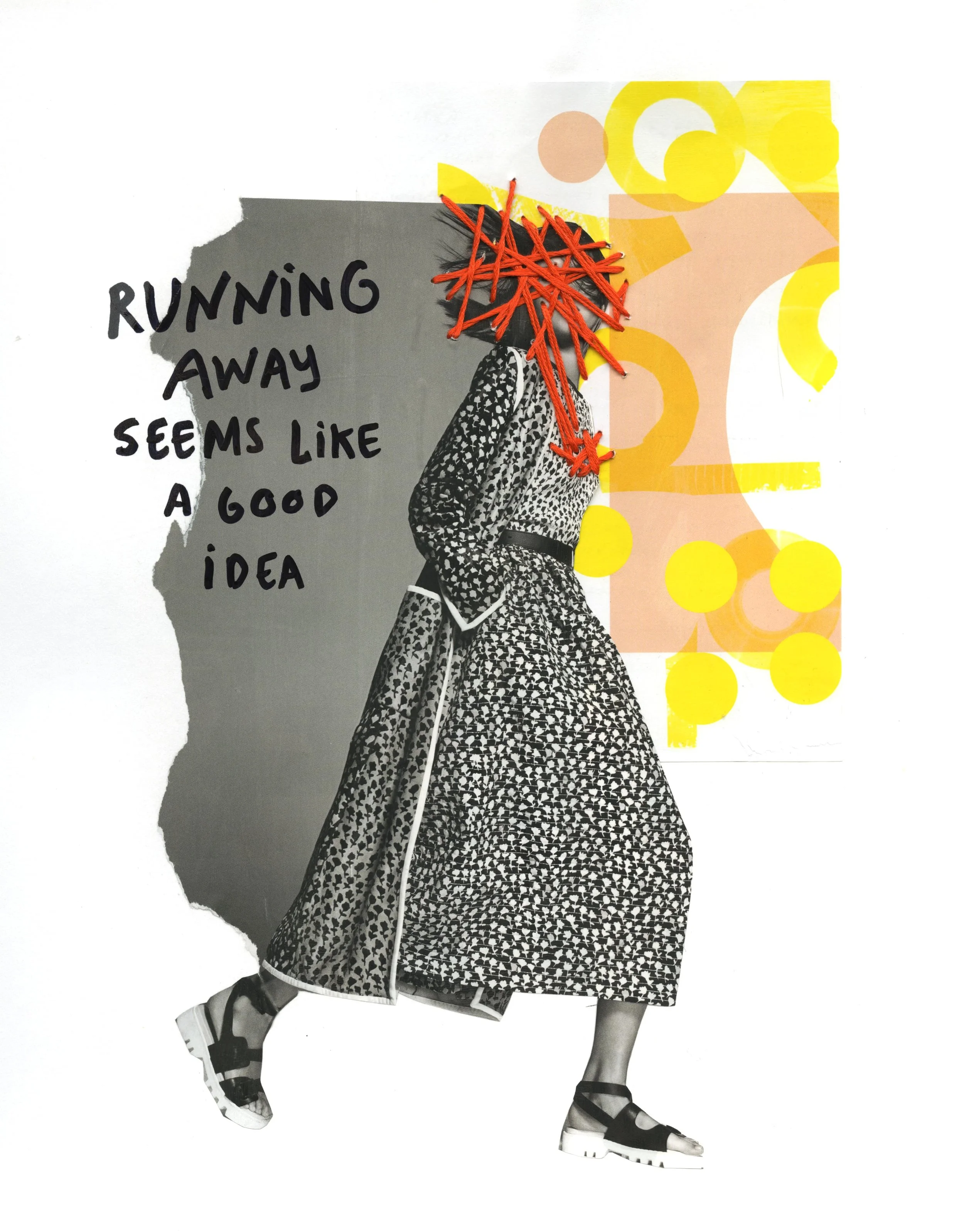 More often than not, I’m working digitally - when I want a break, I go back to experimenting with physical materials. There’s something so satisfying about cutting pieces of paper out and gluing them together. I enjoy incorporate lettering and sewing as well; so far, my collages have focused on my experience with anxiety and the feelings that come with it.